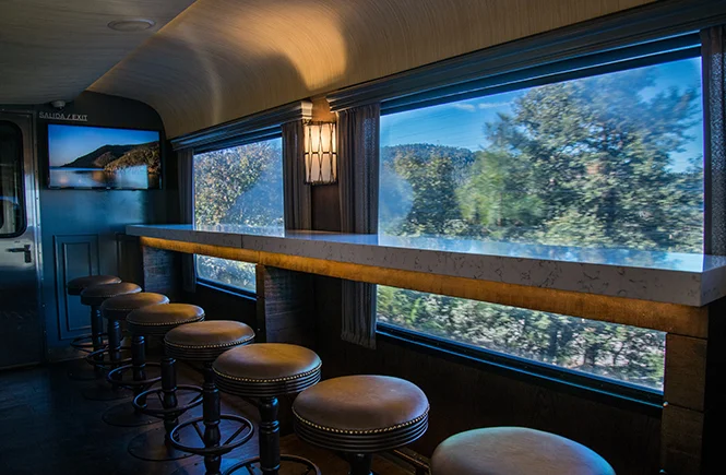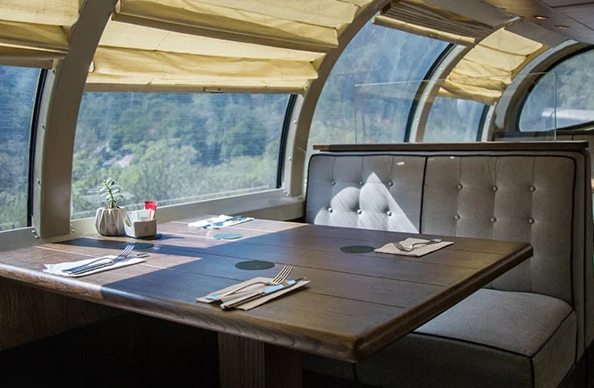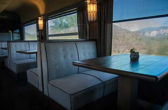 Choose the class that best suits your needs to enjoy an incredible trip through Mexico aboard the train. If you travel in Business Class or First Class, you’ll have access to the bar car. Here you can relax in comfortable armchairs, enjoy your favorite cocktail, and admire the train’s stunning scenery through the panoramic windows.