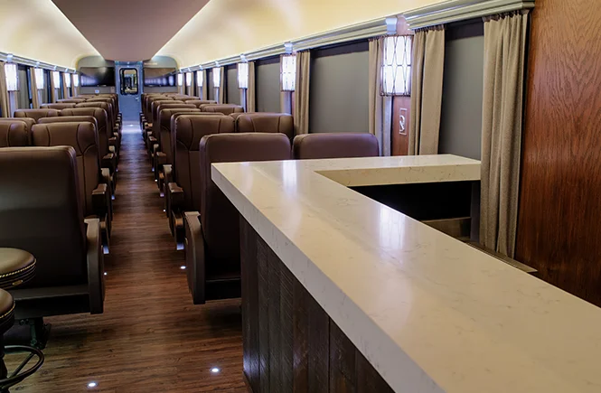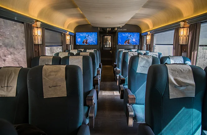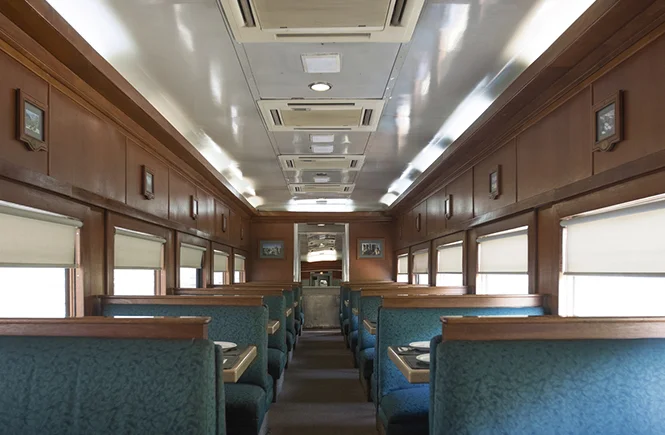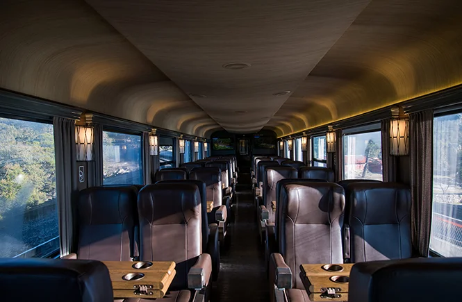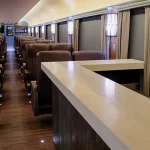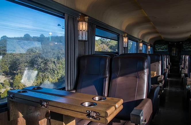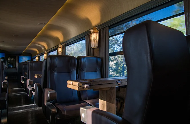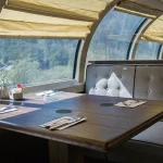 In this car, you’ll have the option of reclining seats for greater comfort during your trip or choosing seats with shared tables where you can eat, have a drink, or play games.